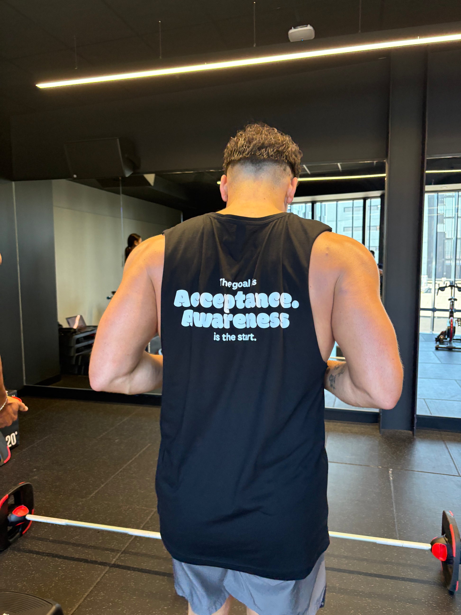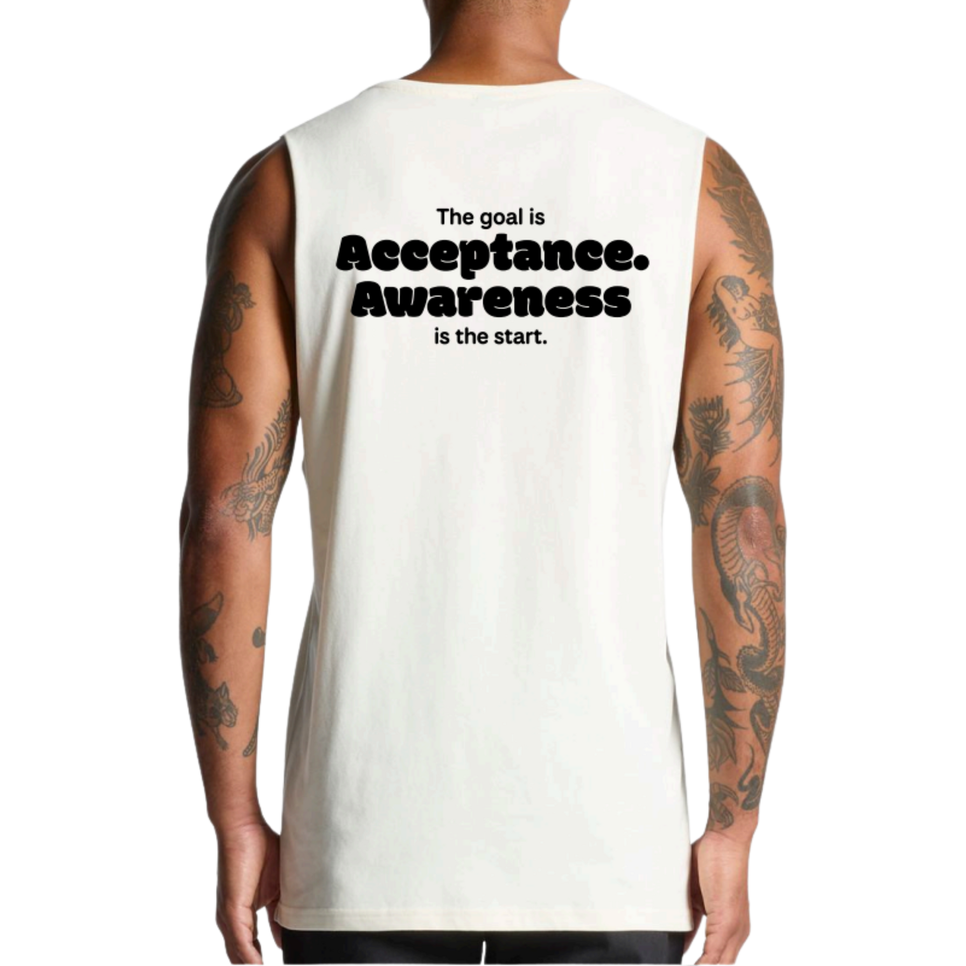 Our Acceptance Singlet is built to make an impact — in meaning and in quality. Made from a heavyweight 240gsm premium cotton, it gives you that solid, structured feel while still keeping you cool for summer. The message across the front is simple but powerful: awareness is only the beginning.