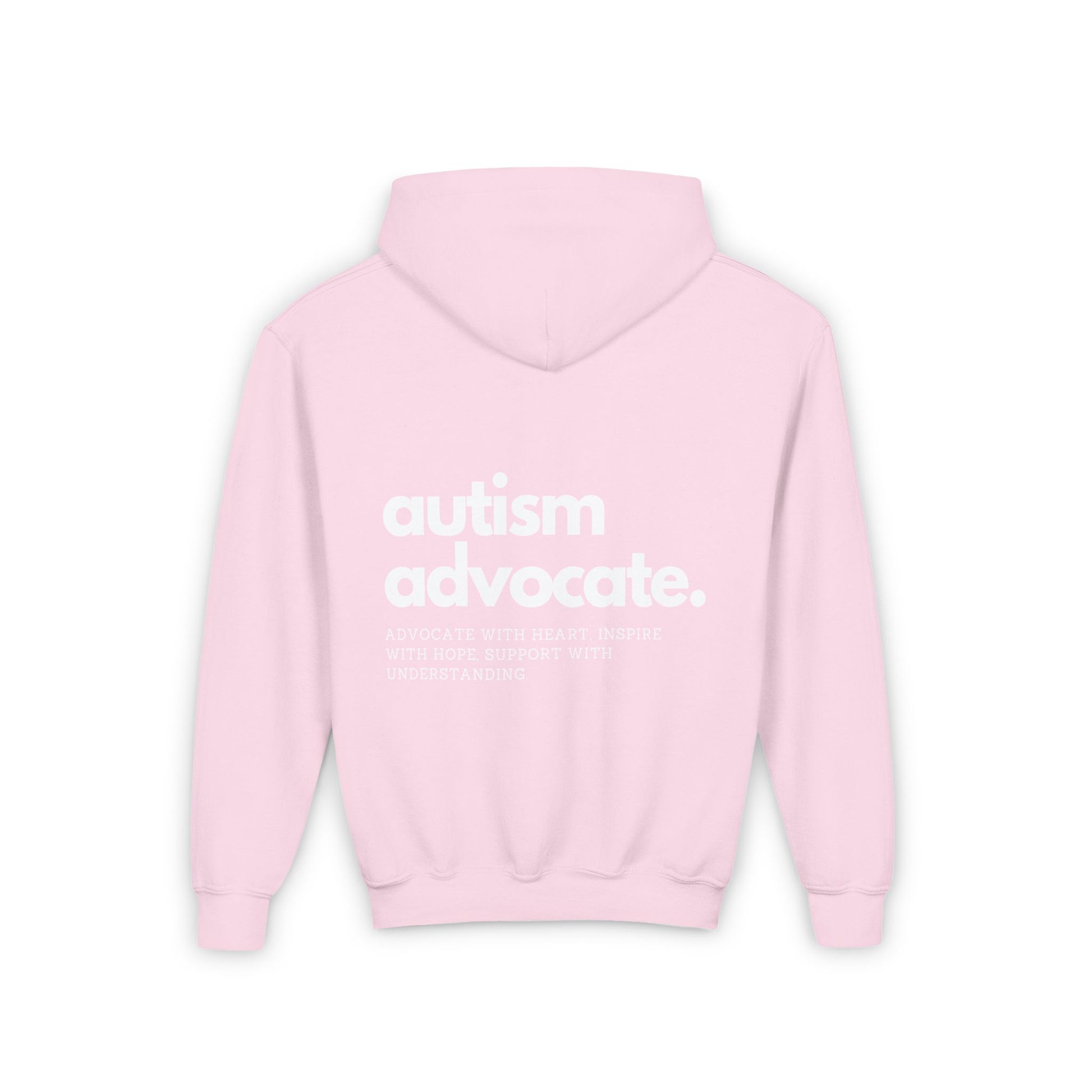 Empower the next generation of change-makers with our "Advocate with Heart" kids' hoodie. This thoughtful design encourages kids to spread love, kindness, and acceptance wherever they go.